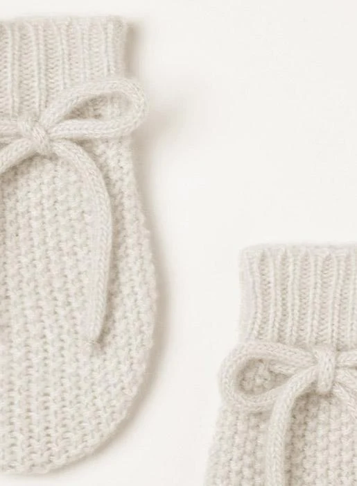 These pretty white mittens have a stylish rice stitch finish and are made in a soft and warm cashmere mix. Featuring little mitten string, they're a great way to keep little fingers warm during the colder months. Pair with our matching white booties for the complete set.