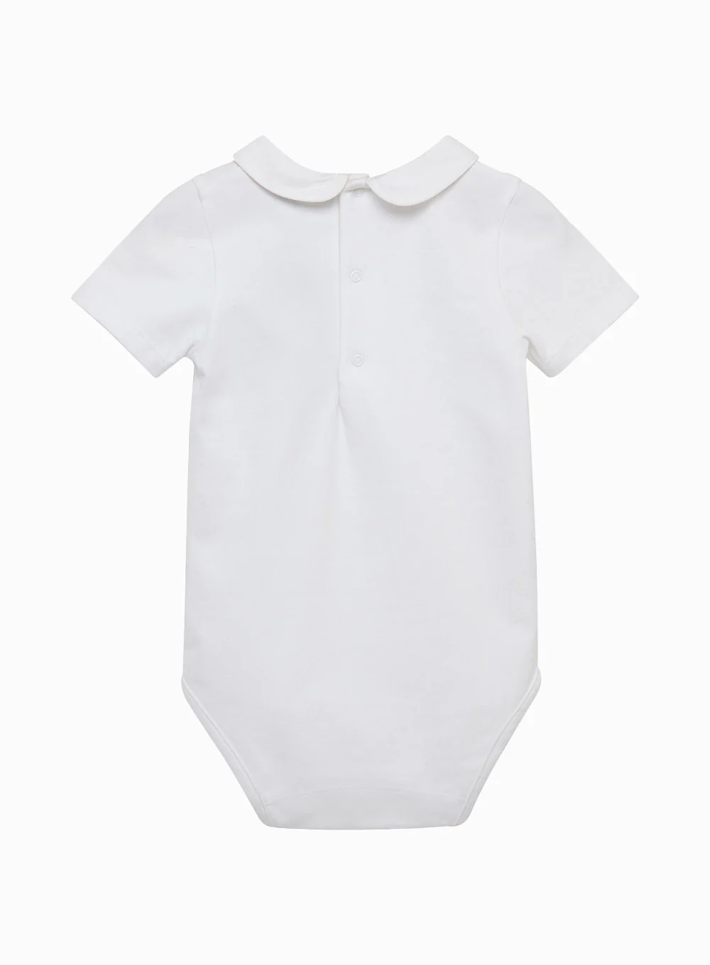 Made from soft jersey this Milo bodysuit has a Peter Pan collar trimmed with smart white piping detail. Team this staple with our dungarees and bib shorts to complete the look. It fastens with poppers at the center back and along the leg seams for easy dressing.