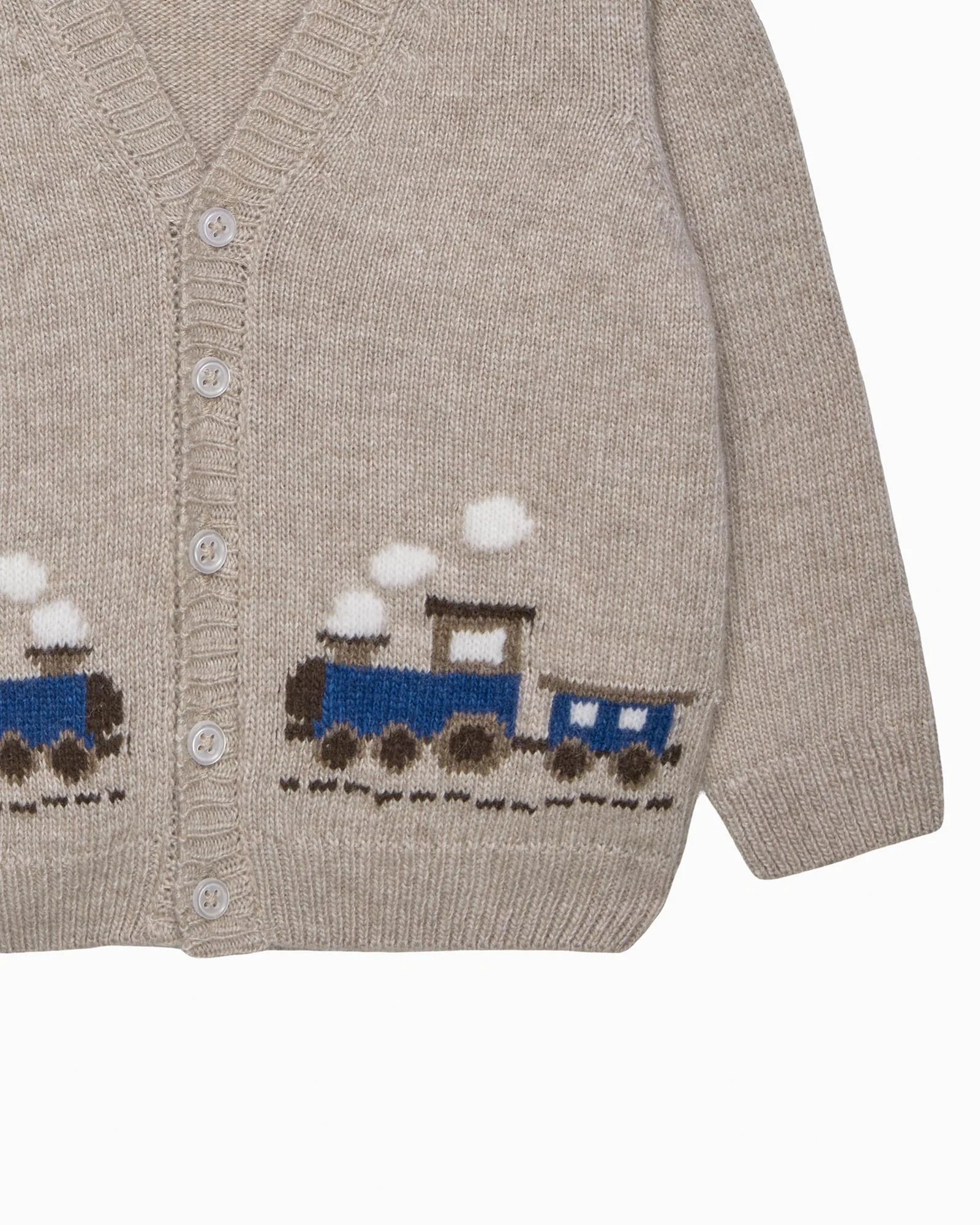 Baby Train Cardigan in Oatmeal
