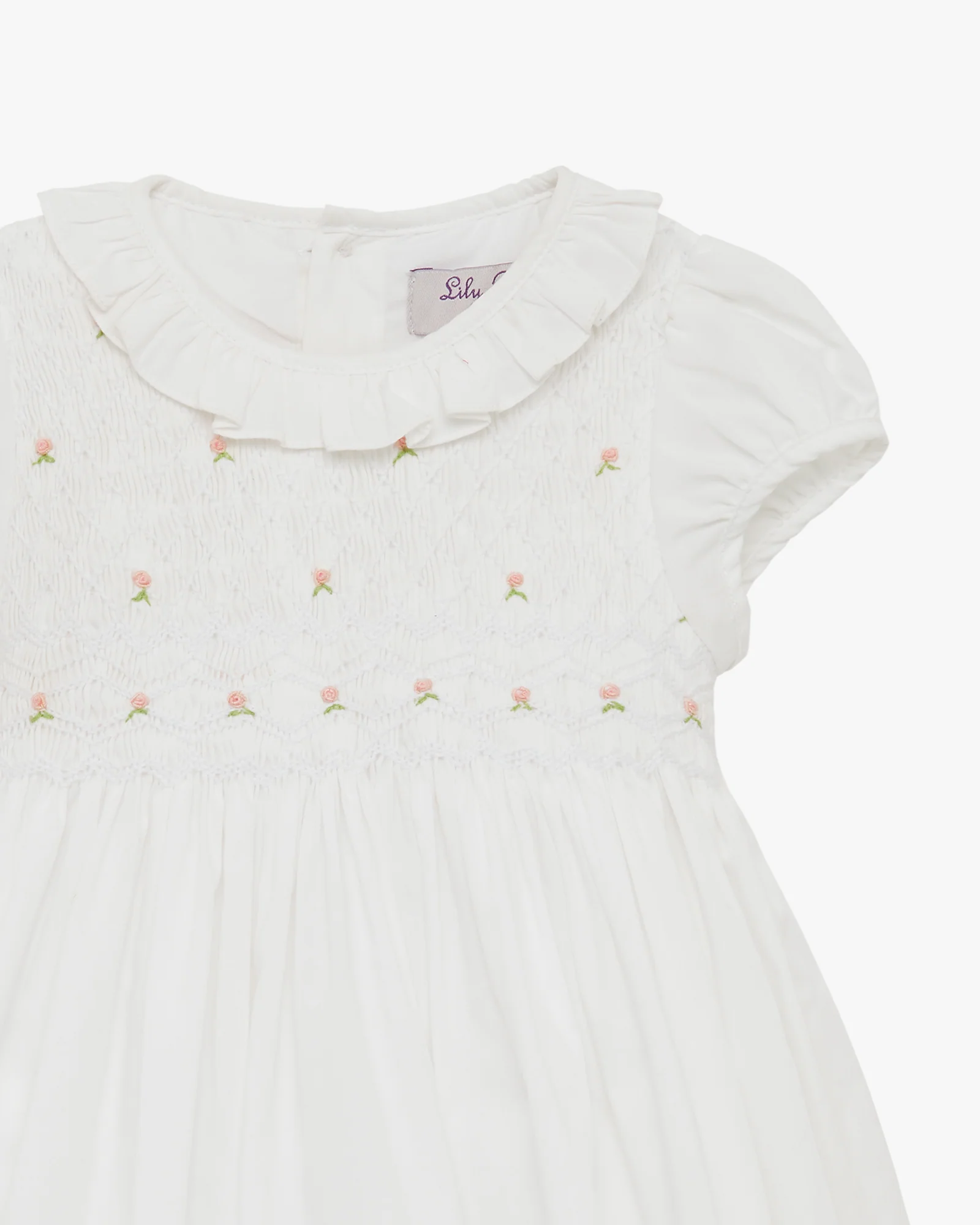 Baby Willow Rose Hand Smocked Dress in White