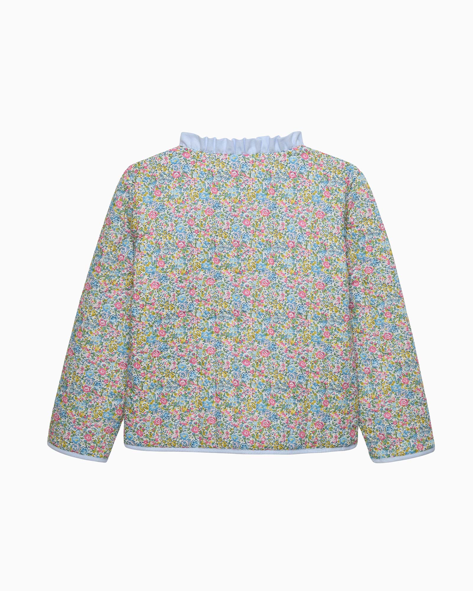 Why not inject a little charm into their wardrobe with our premium quilted jacket. Made from Liberty's Emma & Georgina print fabric, a design based on two tiny, dense floral prints, it features light padding, a classic diamond quilted effect and 2 side pockets. Fully lined, it will make a charming addition to their outerwear options and is sure to stand out on their coat peg.
