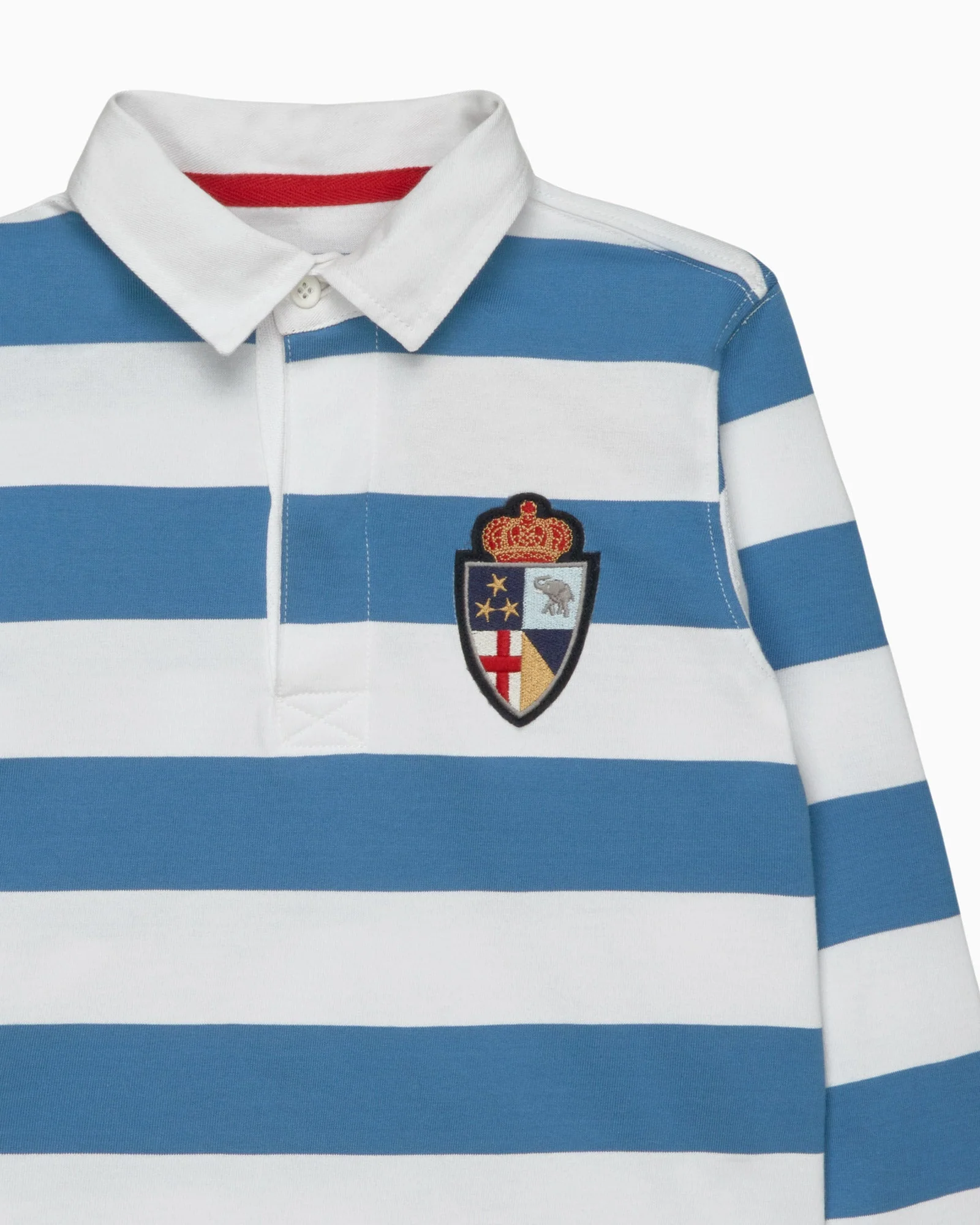 Brilliantly British, this classic long-sleeved, collared rugby shirt with contrasting denim blue and white stripes features our heritage Trotters crest embroidered on the left chest. A great everyday top with a sporty feel, it's perfect for pairing with our favorite Jacob trousers.